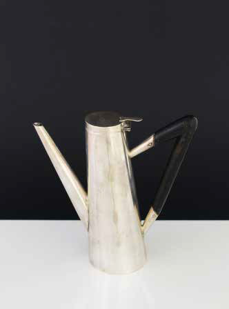 MANIFATTURA NORDEUROPEA Caffettiera in argento 800 con presa in legno, anni ‘50/’60 Punzone: 800. altezza: cm 21,5