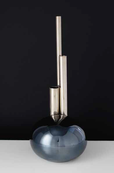 SICART Vaso con base in ceramica e tre cilindri di metallo di misure diverse,...