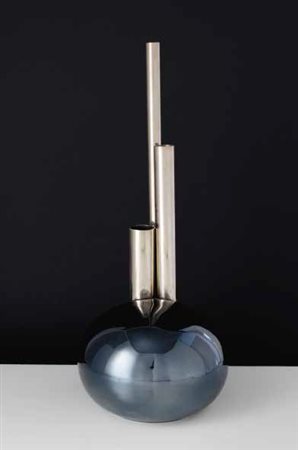 SICART Vaso con base in ceramica e tre cilindri di metallo di misure diverse, anni ‘50/’60 altezza: cm 43,5