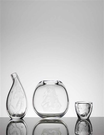 VICKE LINDSTRAND (1904-1983) KOSTA BODA Vaso in vetro trasparente con decoro...