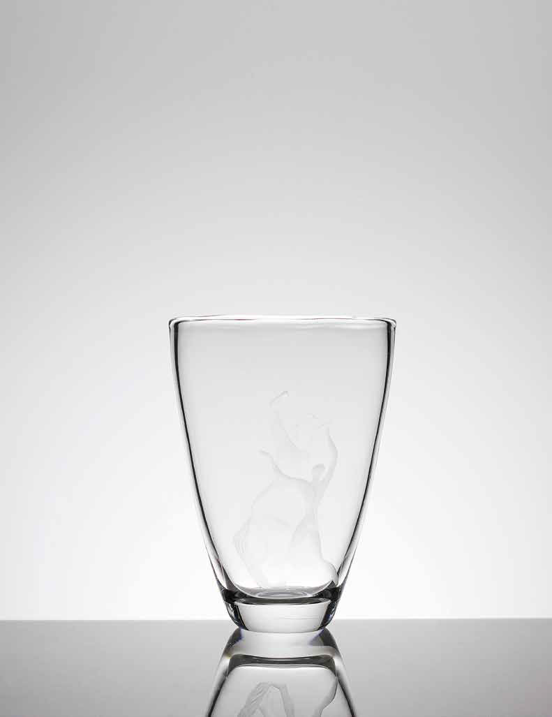 VICKE LINDSTRAND (1904-1983) KOSTA BODA Vaso in vetro cristallo con decori incisi, anni ‘50/’60. Marca: lindstrad kosta. Firma incisa: LG 147. altezza: cm 27. Esposizioni: Monaco, Museo Villa Stuck, Die Fünfziger: Stilkonturen einesJahrzehnts. Italien, Skandinavien, Frankreich, Deutschland, USA, Polen, England, Niederlande, 13 gennaio – 26 febbraio 1984. Bibliografia: AA. VV., Die Fünfziger: Stilkonturen eines Jahrzehnts. Italien, Skandinavien, Frankreich, Deutschland, USA, Polen, England, Niederlande, Monaco, 1984, p. 65, n. 59 (ill.)