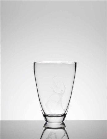 VICKE LINDSTRAND (1904-1983) KOSTA BODA Vaso in vetro cristallo con decori...