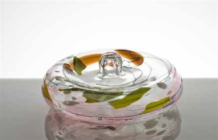 TOSO VETRI D’ARTE Vaso in vetro trasparente con decorazioni policrome nello stile di Fulvio Bianconi, 1970 circa diametro: cm 24