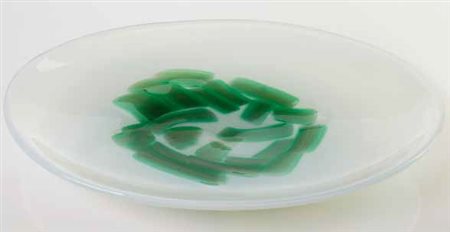 ANZOLO FUGA (1914-1998) A.V.E.M. Piatto in vetro con inclusioni nei toni del verde, 1950 circa. diametro: cm 50
