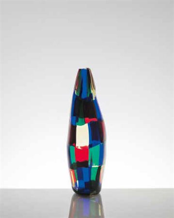 FULVIO BIANCONI (1915-1996) VENINI Vaso della serie “Pezzati”, 1991 Firma incisa: 91 venini Fulvio Bianconi. Reca etichetta: VENINI MURANO MADE IN ITALY. altezza: cm 27,5