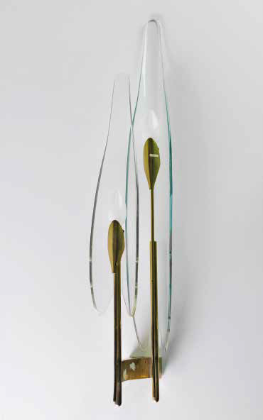 MAX INGRAND (1908-1969) FONTANA ARTE Coppia di appliques modello 1461 lunghezza: cm 77. Diffusore mancante in uno dei due esemplari. Esposizioni: New York, “Sculptures in Glass” of the Fucina degli Angeli, 1968; Monaco, Museo Villa Stuck, Die Fünfziger: Stilkonturen einesJahrzehnts. Italien, Skandinavien, Frankreich, Deutschland, USA, Polen, England, Niederlande, 13/01 – 26/02 1984. Bibliografia: AA. VV., “Sculptures in Glass” of the Fucina degli Angeli, Adria Art Inc., Venezia 1968 (ill.); AA. VV., Die Fünfziger: Stilkonturen eines Jahrzehnts. Italien, Skandinavien, Frankreich, Deutschland, USA, Polen, England, Niederlande, Monaco, 1984, p. 103, n. 68; F. Deboni, Fontana Arte, Gio Ponti, Pietro Chiesa, Max Ingrand, Allemandi & C., Torino, 2012, fig. 334