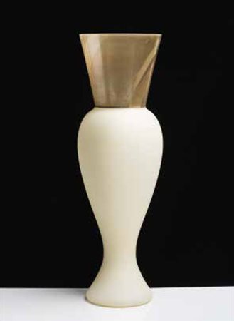 RODOLFO DORDONI (1954) VENINI Vaso in vetro satinato della serie “Re Regina Principe” con la parte superiore con inclusioni metalliche, 1997. Firma incisa: venini 97. Etichetta: VENINI MURANO MADE IN ITALY. altezza cm 50. Bibliografia: F. Deboni, I vetri Venini, Catalogo 1921-2007, volume II, Allemandi & C., Torino, 2007, fig. 369