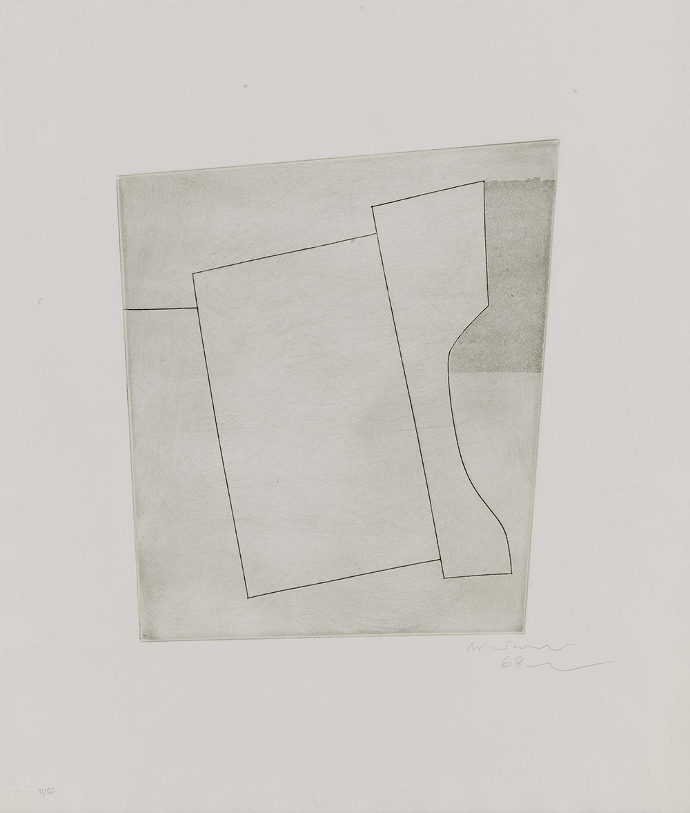 Ben Nicholson, Denham 1894 - Londra 1982, Mug ang goblet, 1968, Acquaforte e acquatinta, es 11/50, cm 26,5x23,5 (lastra), cm 43,7x37,7 (carta), Firma e data a matita sul margine in basso a destra: Ben Nicholson / 68, tiratura in basso a sinistra: 11/50, timbro a secco Lafranca, Tiratura di 50 esemplari e 6 prove d'artista; editore e stampatore François Lafranca, Bibliografia: Ben Nicholson, Éditions Lafranca, Locarno, p nn