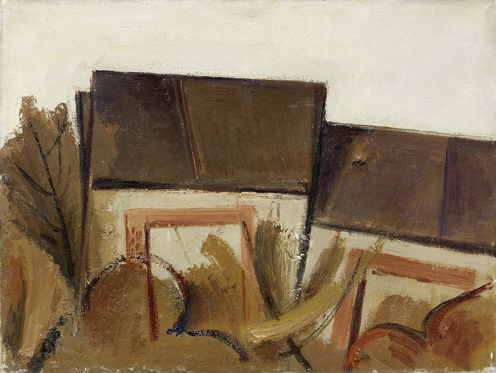 Alberto Manfredi, Reggio Emilia 1930 - 2001, La casa di Duilio, 1966-67, Olio su tela, cm 30x40, Firma e data in basso al centro: A Manfredi 1967; firma e data al verso sulla tela: A Manfredi 1966; titolo sul telaio: La casa di Duilio