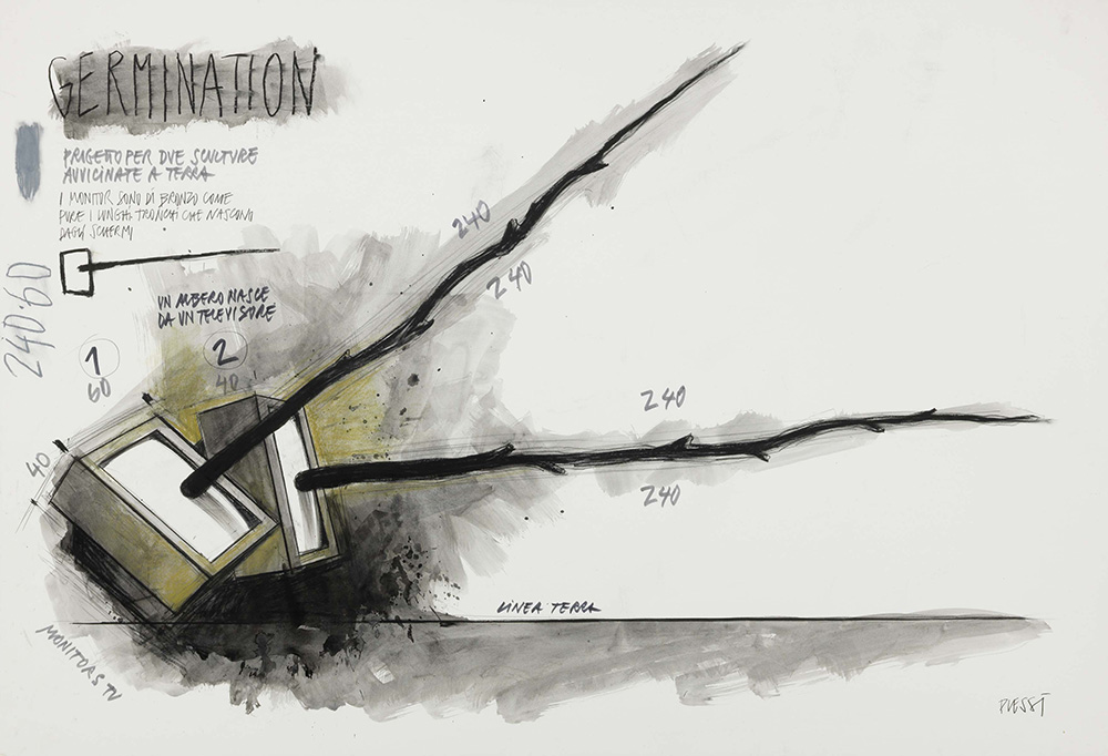 Fabrizio Plessi, Reggio Emilia 1940, Germination Progetto per due sculture...