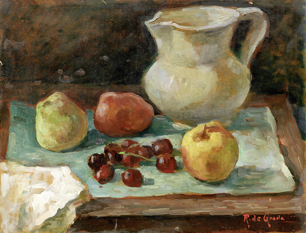 Raffaele De Grada, Milano 1885 - 1957, Natura morta con frutta e vaso bianco,...