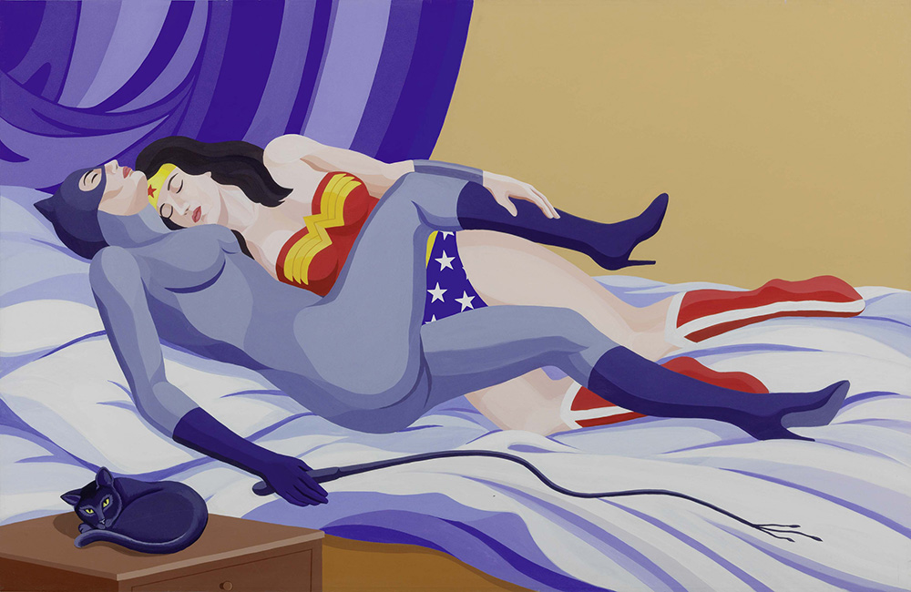 Giuseppe Veneziano, Mazzarino (Cl) 1971, Wonder Woman's Intimacy III, 2011, Olio su tela, cm 110x170, Titolo, data e firma al verso sulla tela: "Wonder Woman's Intimacy III" / 2011 / Giuseppe Veneziano; sul telaio: etichetta Contini Galleria d'Arte: numero d'archivio 0046/VEG, Foto autenticata dall'artista su certificato Contini Galleria d'Arte con n 0046/VEG