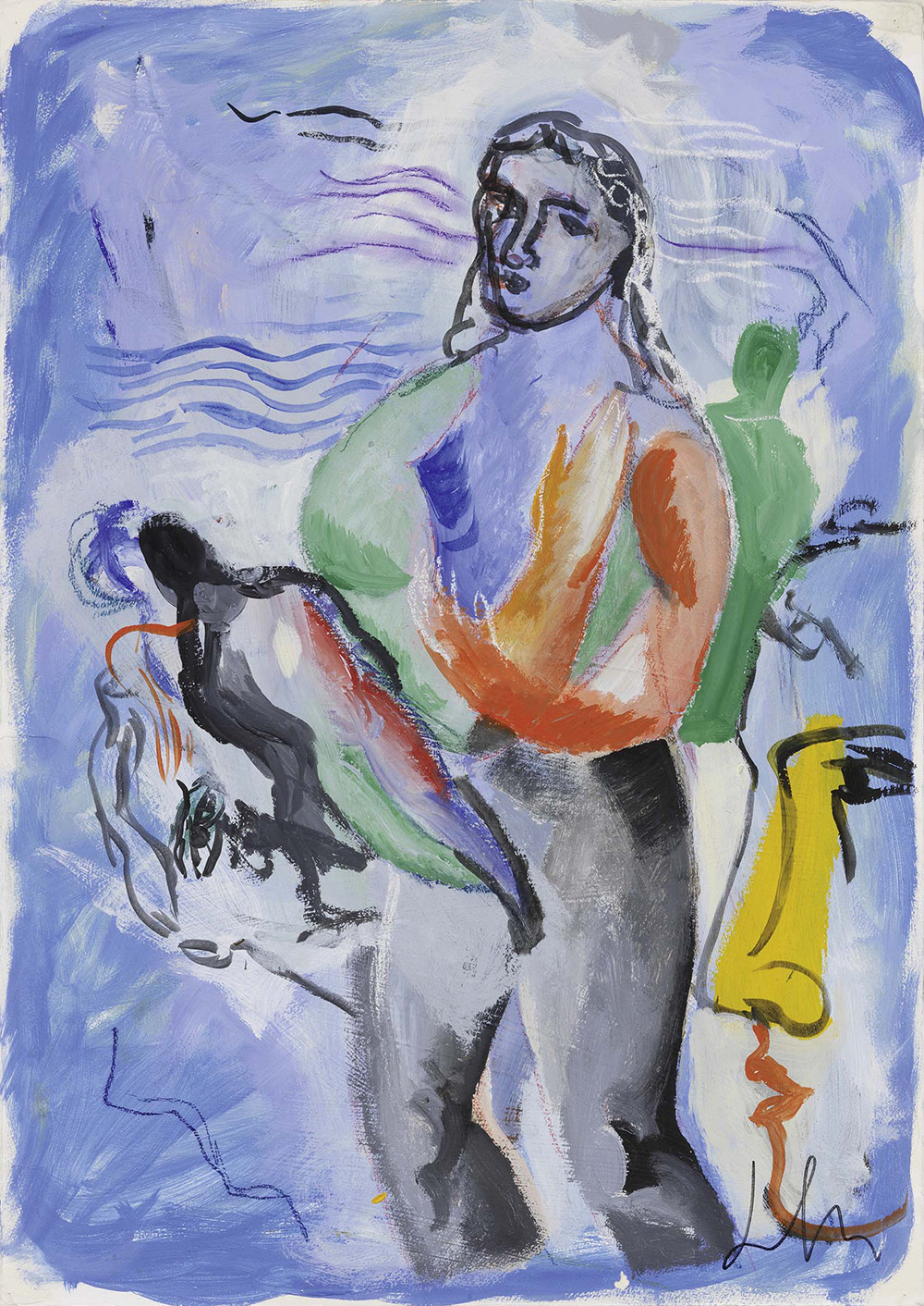 Sandro Chia, Firenze 1946, Figura, Tecnica mista su carta applicata su cartone, cm 69,8x50, Firma in basso a destra: Chia