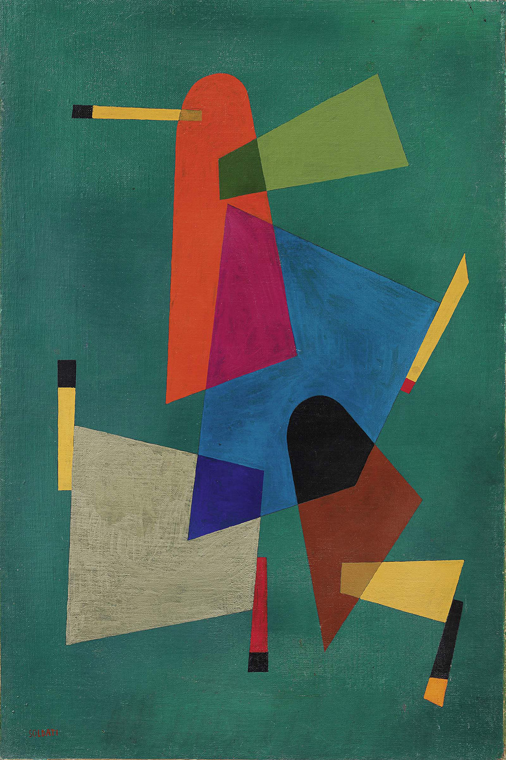 Atanasio Soldati, Parma 1896 - 1953, Composizione, Olio su tela, cm 91x61, Firma in basso a sinistra: Soldati, Opera registrata presso l'Archivio Atanasio Soldati, Milano (si veda catalogo Sotheby's, Milano, 26/11/2008, lotto n 456)