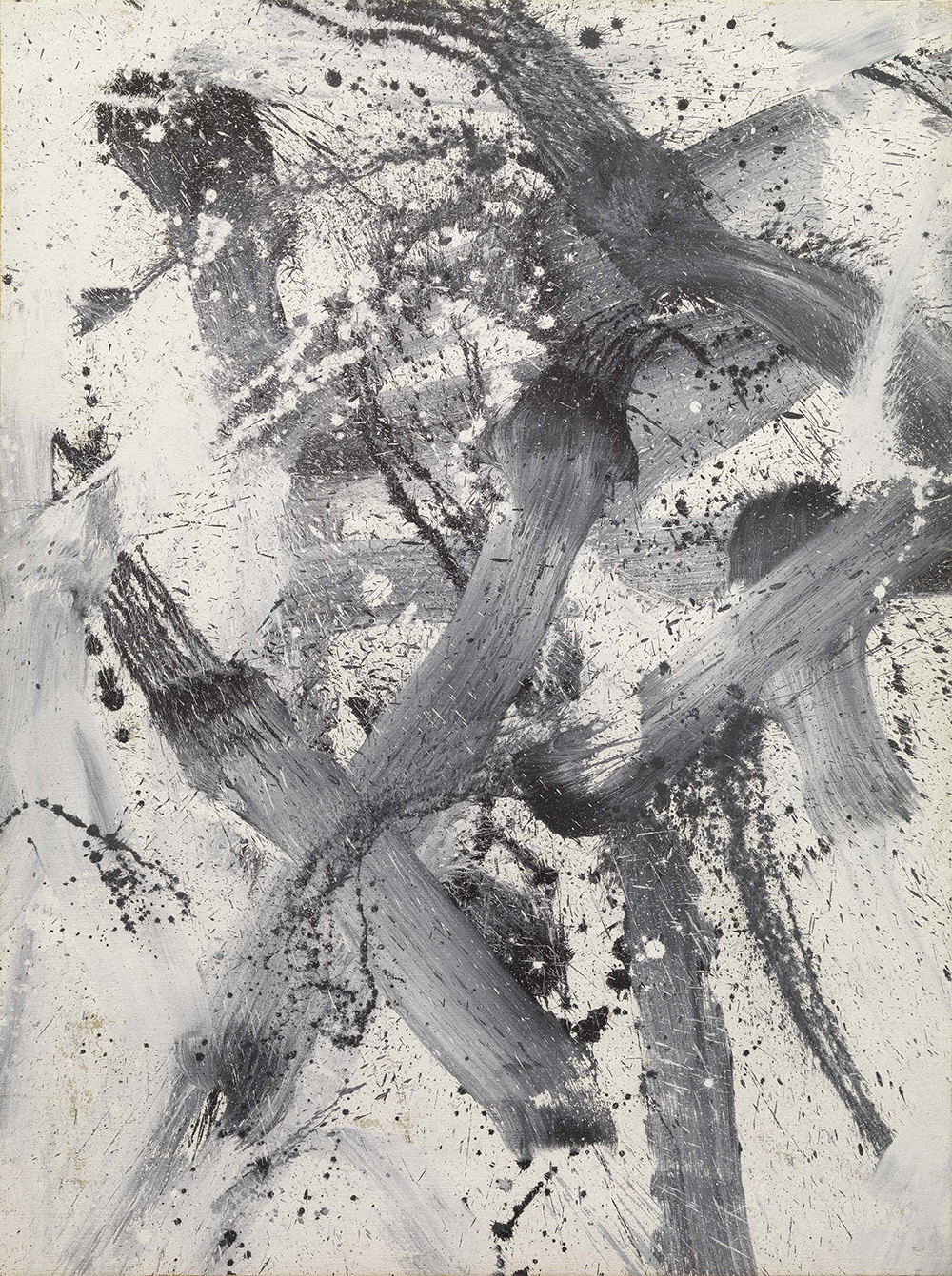 Toti Scialoja, Roma 1914 - 1998, Grigio, 1987, Vinavil e acrilico su canapa, cm 152x112,5, Firma, data e titolo al verso sulla tela: Scialoja 1987 / "Grigio", Certificato su foto Fondazione Toti Scialoja, Roma, 21/10/2010, con n 068710