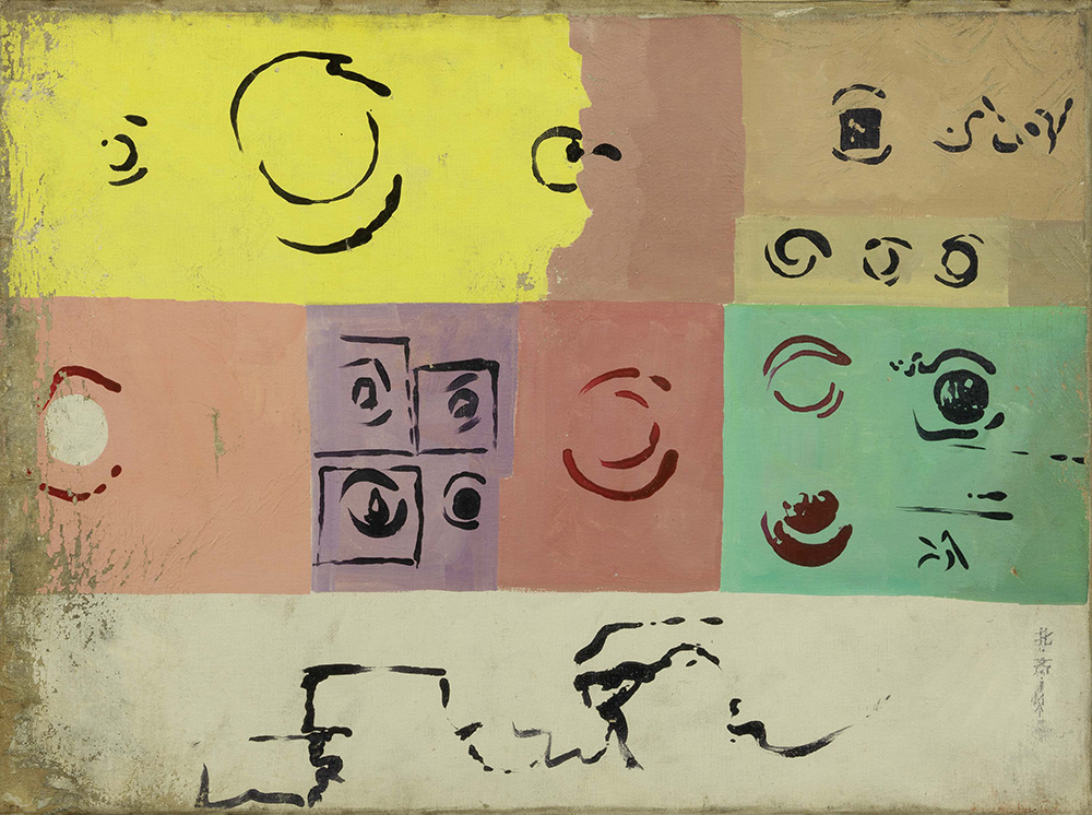 Toshimitsu Imai, Kyoto 1928 - 2002, Tributo a Kusaj, 1950-55, Olio su tela,...