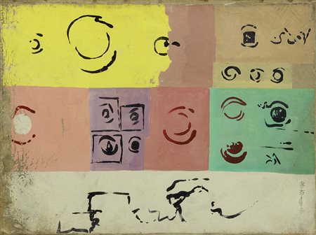 Toshimitsu Imai, Kyoto 1928 - 2002, Tributo a Kusaj, 1950-55, Olio su tela, cm 50x68, Firma in basso a destra, Certificato di autenticità Studio d'Arte Kadrama, Lodi