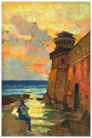 Lotto 33 | RENATO NATALI Livorno 1883 – 1979 Lazzaretto Olio su faesite 30 x 20. Firma...
