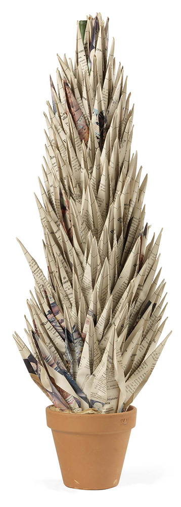 Stefano Arienti, Asola (Mn) 1961, Cactus, 1987, Carta stampata piegata e griffata in vaso in coccio, cm 72 h, Certificato con foto firmato dall'artista, Milano, 14/3/2008