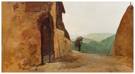 FERRUCCIO RONTINI Firenze 1893 – Livorno 1964 Contadino 1936 Olio su tavola 36,5 x 66,5. Firma e data in b. a d.; sul verso titolo, località e data.
