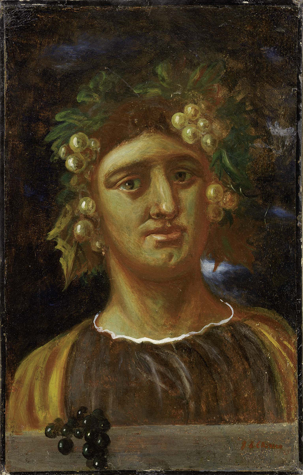 Giorgio de Chirico, Volos 1888 - Roma 1978, Bacco, 1923, Olio su cartone applicato su tavola, cm. 51x33, Firma in basso a destra: G. de Chirico. Al verso: cartiglio A / 229: cartiglio 81 / De Chirico / Tête de Bacchus: etichetta De Chirico / Gli Anni Venti / Galleria Civica d'Arte Moderna e Contemporanea / Palazzo Forti / Galleria dello Scudo Verona / 14 dicembre 1986 - 16 febbraio 1987 / Opera esposta: etichetta De Chirico / Gli Anni Venti / Comune di Milano / Palazzo Reale / 6 marzo - 26 aprile 1987 / Opera esposta: etichetta Biennale di Venezia '84, con n. 176., Storia, Collezione Giorgio Castelfranco, Firenze;, Collezione Pier Maria Bardi, San Paolo del Brasile;, Collezione privata, Roma;, Collezione privata, Certificato su foto di Claudio Bruni Sakraischik, Roma, 15 ottobre 1980, con n. 128/80., Esposizioni, Biennale Romana, 1923;, Exhibition of Paintings by Giorgio de Chirico, New York, Balzac Galleries, 21 maggio - 14 giugno 1930;, Giorgio de Chirico, a cura di Piero Pacini, Cortina d'Ampezzo e Prato, Galleria Farsetti, dicembre 1981 - gennaio 1982, cat. n. III, illustrato;, Giorgio de Chirico, gli anni Venti, Verona, Galleria d'Arte Moderna e Contemporanea Palazzo Forti e Galleria dello Scudo, 14 dicembre 1986 - 31 gennaio 1987, cat. pp. 72, 73, illustrato a colori;, Giorgio de Chirico, gli anni Venti, Milano, Palazzo Reale, 6 marzo - 26 aprile 1987, cat. pp. 72, 73, illustrato a colori;, XLI Esposizione Biennale Internazionale d'Arte, a cura di Maurizio Calvesi, Venezia, 1984, cat. p. 65, n. 6, illustrato;, Aria d'Europa, de Chirico de Pisis, a cura di Luigi Cavallo, Milano, Focette, Cortina d'Ampezzo e Prato, Galleria Farsetti, giugno - settembre 1987, cat. tav. I, illustrato a colori., Bibliografia, Giorgio Castelfranco, Giorgio de Chirico, in Mostra individuale dei pittori Carlo Carrà, Giorgio de Chirico e postuma di Rubaldo Merello, Bestetti & Tumminelli, Milano, 1926, n. 10;, Pia Vivarelli, Giorgio de Chirico 1888-1978, I. Catalogo, Roma, Galleria Nazionale d'Arte Moderna, 11 novembre 1981 - 3 gennaio 1982, De Luca Editore, Roma, 1981, p. 22;, Claudio Bruni Sakraischik, Catalogo Generale Giorgio de Chirico, volume settimo, opere dal 1908 al 1930, Electa Editrice, Milano, 1983, n. 398;, L'opera completa di Giorgio de Chirico 1908-1924, presentazione, apparati critici e filologici di Maurizio Fagiolo dell'Arco, Classici dell'Arte, Rizzoli Editore, Milano, 1984, p. 113, n. 212;, Attilio Tori, Per un catalogo della raccolta Castelfranco. Museo Casa Rudolfo Siviero, Regione Toscana, Firenze, 2014, p. 46