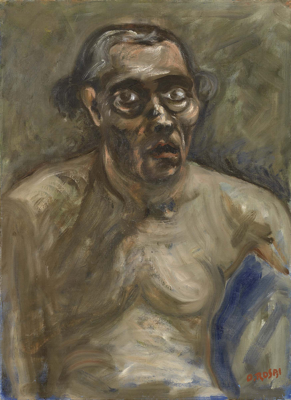 Ottone Rosai, Firenze 1895 - Ivrea (To) 1957, Autoritratto, (1947), Olio su tela, cm. 81x60, Firma in basso a destra: O. Rosai. Al verso sulla tela: etichetta Eredità Rosai, Firenze 30/5/1957., Storia, Collezione Silvio Loffredo, Firenze;, Collezione privata, Esposizioni, I maestri del segno. Ottone Rosai, a cura di Giovanni Stefani, Cetona, 8 agosto - 1 settembre 1993, illustrato a colori in copertina;, Ottone Rosai, ritratti e autoritratti. Un dialogo con Bacon e Baselitz, Cortina d'Ampezzo, Farsettiarte, 9 agosto - 2 settembre 2018, poi Milano, Galleria d'Arte Frediano Farsetti, 20 settembre - 10 ottobre 2018, cat. n. 14, illustrato a colori., L'opera è riprodotta nel primo volume del Catalogo Generale Ragionato delle Opere di Ottone Rosai, a cura di Giovanni Faccenda (Editoriale Giorgio Mondadori), p. 469, n. 279, di prossima pubblicazione., Bibliografia, Rosai oggi. Venticinquesimo anniversario della morte, 13 maggio 1982, a cura di Alessandro Parronchi, Edizioni Galleria Pananti, Firenze, 1982, pp. 130, 131, tav. 58