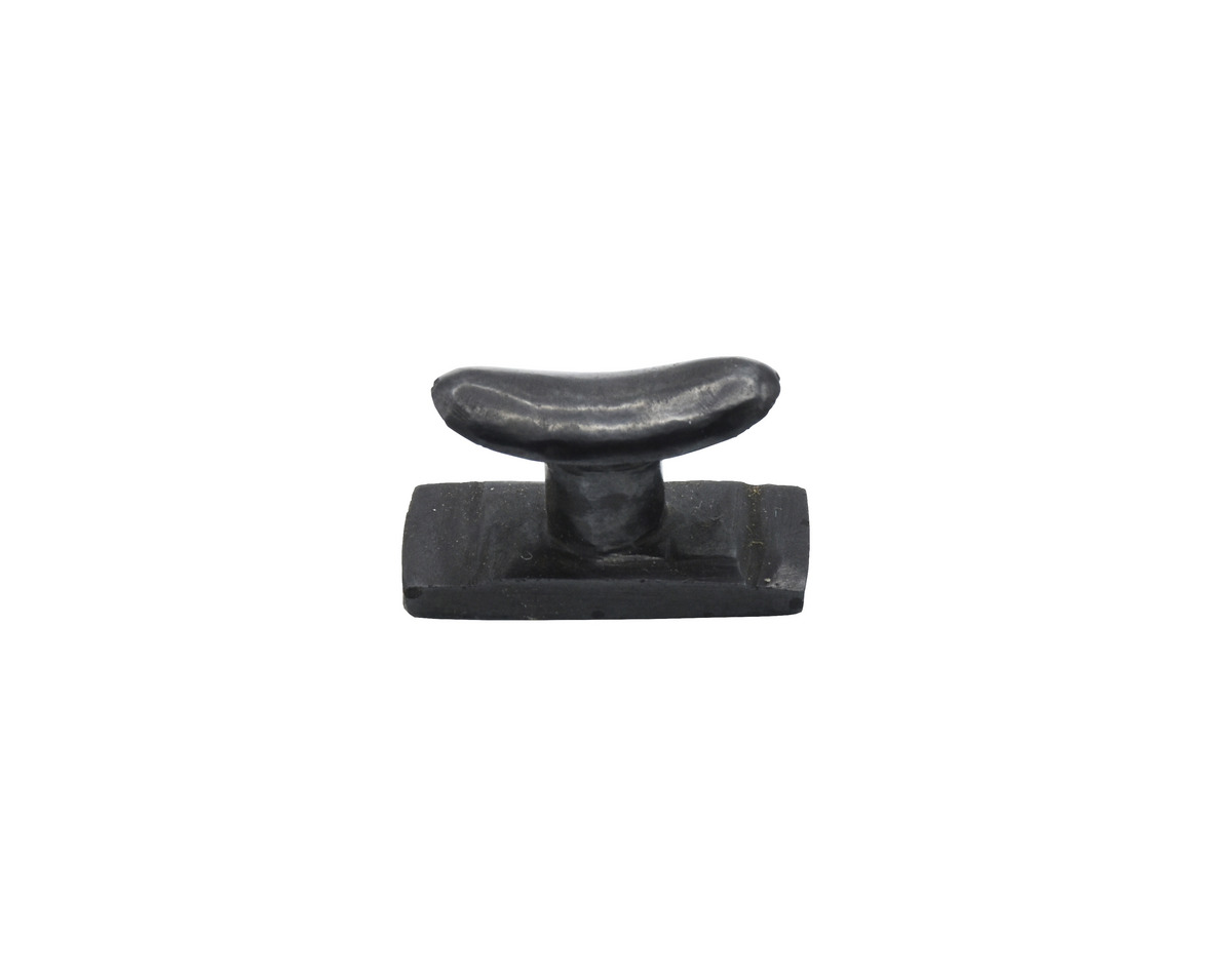 AMULETO IN FOGGIA DI POGGIATESTA DATAZIONE: Epoca Tarda 716-30 a. C. MATERIA E TECNICA: ematite intagliata e levigata Amuleto in foggia di poggiatesta in ematite, che auspicava sonni tranquilli PRODUZIONE: cultura egiziana STATO DI CONSERVAZIONE: integro DIMENSIONI: alt. cm 1, lungh. cm 2 PROVENIENZA: New Hermes Arte Antica, Arezzo