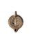 LUCERNA A DISCO CON VENERE DATAZIONE: I-II sec. d. C. MATERIA E TECNICA: argilla rosata, vernice bruna, modellata a stampo Lucerna a disco di forma ovale con serbatoio schiacciato, spalla stretta inclinata verso l'esterno, disco delimitato da un bordo, ansa verticale piena forata; sul disco raffigurazione della dea Venere stante e nuda al centro di una grande conchiglia a nervature posta in verticale PRODUZIONE: ceramica romana STATO DI CONSERVAZIONE: integra una con tracce di bruciatura attorno al becco; lacunosa l’altra DIMENSIONI: alt. cm. 4; lungh. cm 9