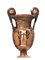 B) sotto al labbro meandro ad onda destrorso; sul collo tralcio orizzontale di alloro e grande palmetta aperta a ventaglio fra volute; sul ventre stele funeraria su podio a cui sono legate una tenia nera ed una bianca; ai lati della stele due giovani avvolti nel mantello dal quale fuoriesce solo un braccio, in atto di offrire una ghirlanda ed una foglia d’edera; nel campo due tenie ripiegate e due rosette