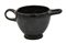 GLAUX ATTICA A VERNICE NERA DATAZIONE: V-IV sec. a.C. MATERIA E TECNICA: argilla figulina arancio, vernice nera lucente con riflessi metallici, modellata a tornio veloce Orlo arrotondato leggermente rientrante; vasca troncoconica; piede ad anello; un’ansa a bastoncello impostata obliquamente sotto l’orlo, l’altra a nastro impostata verticalmente sul corpo; interamente verniciata; sotto al piede anello centrato da puntino. PRODUZIONE: ceramica attica a vernice nera. STATO DI CONSERVAZIONE: integra; lievi scheggiature. DIMENSIONI: alt. cm 7,2; diam. bocca cm 8,5. PROVENIENZA: Casa d’aste Pandolfini Firenze