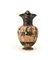 OINOCHOE ATTICA A FIGURE NERE DATAZIONE: fine VI sec. a. C. MATERIA E TECNICA: argilla figulina arancio, vernice nera, suddipinture in bruno e paonazzo, dettagli resi a graffito; modellata a tornio veloce Oinochoe con ampia bocca trilobata pronunciata da due apicature, collo troncoconico distinto da un collarino a rilievo, spalla appiattita corpo ovoide schiacciato, ansa a bastoncello lievemente sormontante, impostata verticalmente dall’orlo alla spalla, piede a disco DECORAZIONE ACCESSORIA: bocca, ansa e parte inferiore del corpo verniciati, all’attacco col piede motivo a raggiera, piede verniciato superiormente e risparmiato sul bordo; sulla spalla linguette alternate in bruno e paonazzo DECORAZIONE: Dioniso a cavallo di un mulo gradiente a sinistra, preceduto e seguito da un satiro nudo e barbato con lunga coda equina; il dio indossa un chitone corto e porta una corona di pampini; il mulo ha un elegante incedere "da cavallo" con la zampa anteriore sinistra sollevata; il satiro che precede il dio suona un flauto e quello che lo segue tiene un’olpe STATO DI CONSERVAZIONE: ricomposta da frammenti con lacune PRODUZIONE: ceramica attica a figure nere DIMENSIONI: alt. cm 27,5