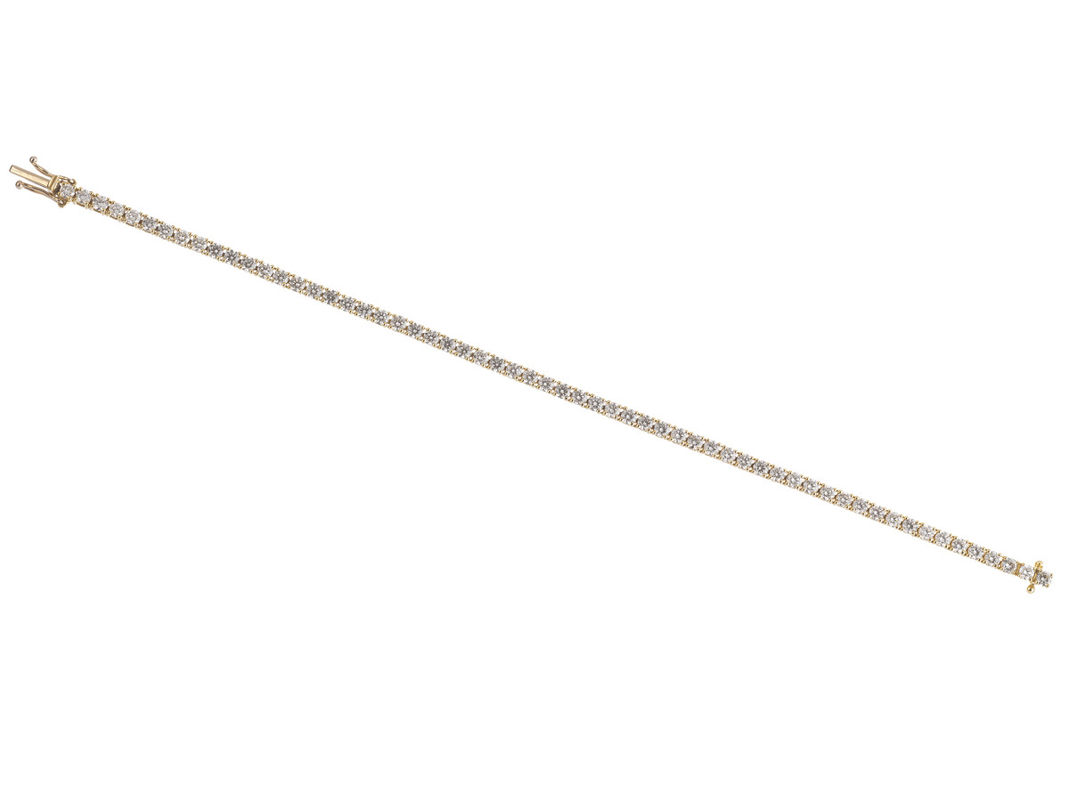 BRACCIALE TENNIS IN ORO GIALLO E DIAMANTI realizzato ad una linea di sessanta diamanti taglio brillante rotondo per ct 4.90 circa montati entro castoni a griffes, punzone 750, lungh. cm 18,5 DIAMOND AND YELLOW GOLD TENNIS BRACELET