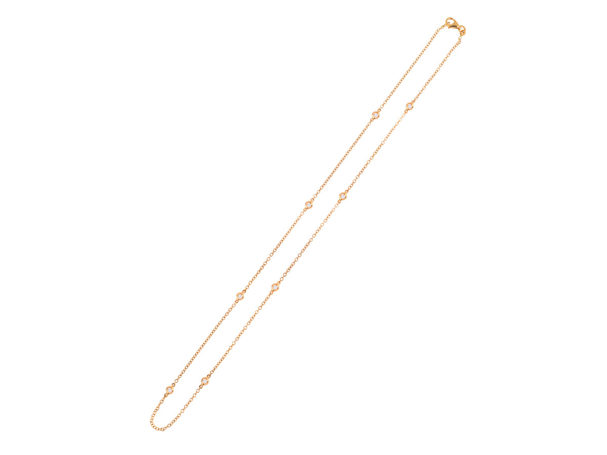 GIROCOLLO IN ORO ROSA E DIAMANTI realizzato ad una fila di catena a maglia sottile intercalata da otto diamanti taglio brillante rotondo per ct 0.25 circa, punzone 750, lungh. cm 45 DIAMOND AND ROSE GOLD CHAIN NECKLACE