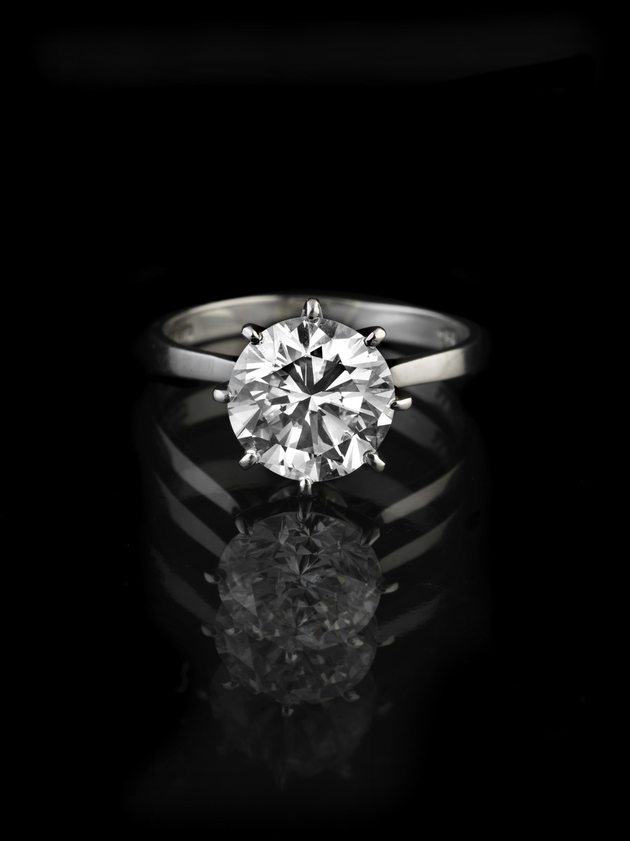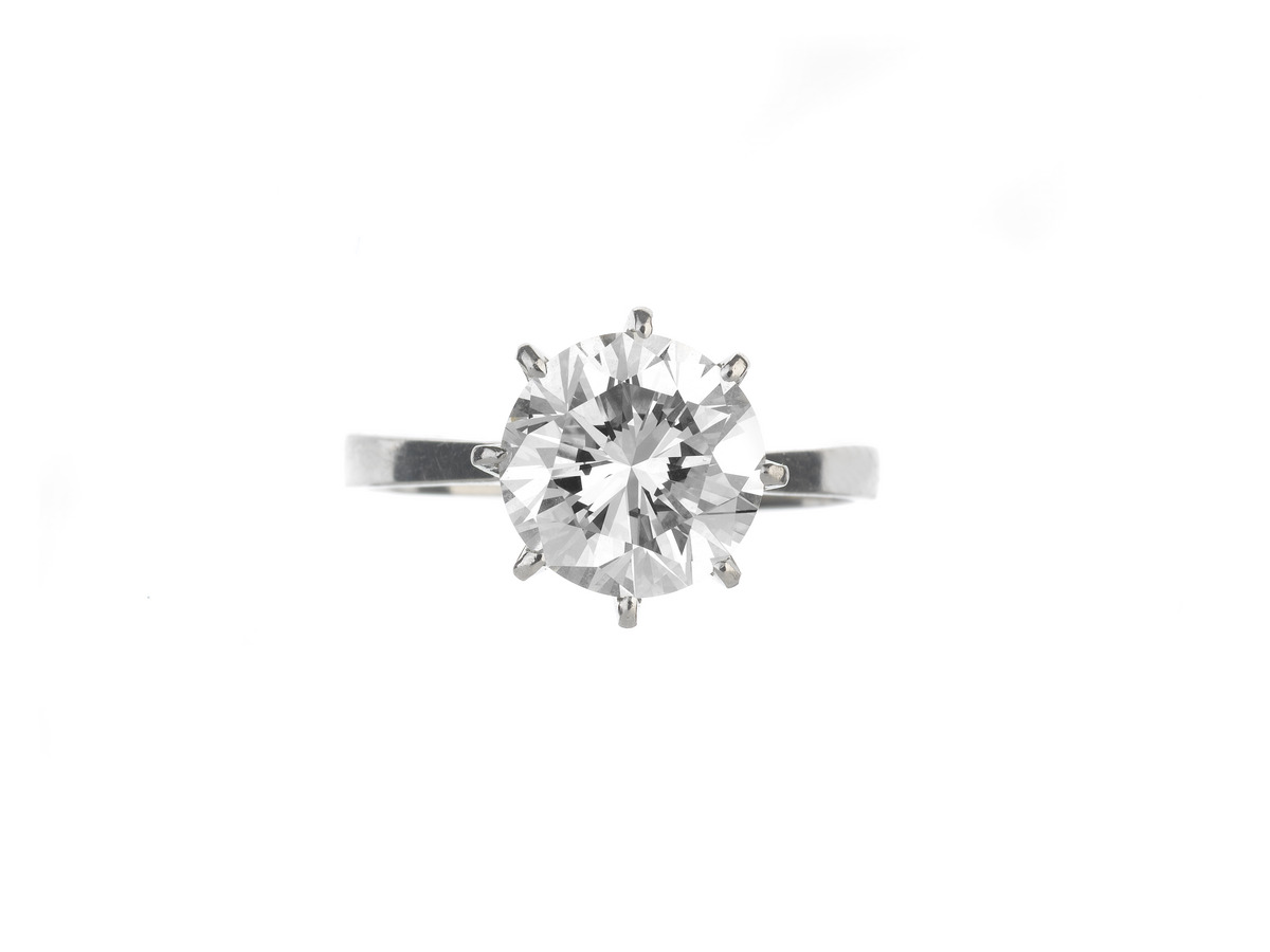 ANELLO IN ORO BIANCO E DIAMANTE al centro un diamante taglio brillante rotondo di ct 3.10 circa entro montatura a sei griffes, punzone 750, mis. 17 DIAMOND AND WHITE GOLD SOLITAIRE RING