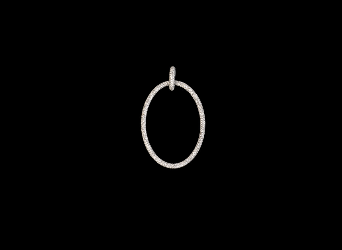 PENDENTE IN ORO BIANCO E DIAMANTI disegnato come un anello ovale, la parte...
