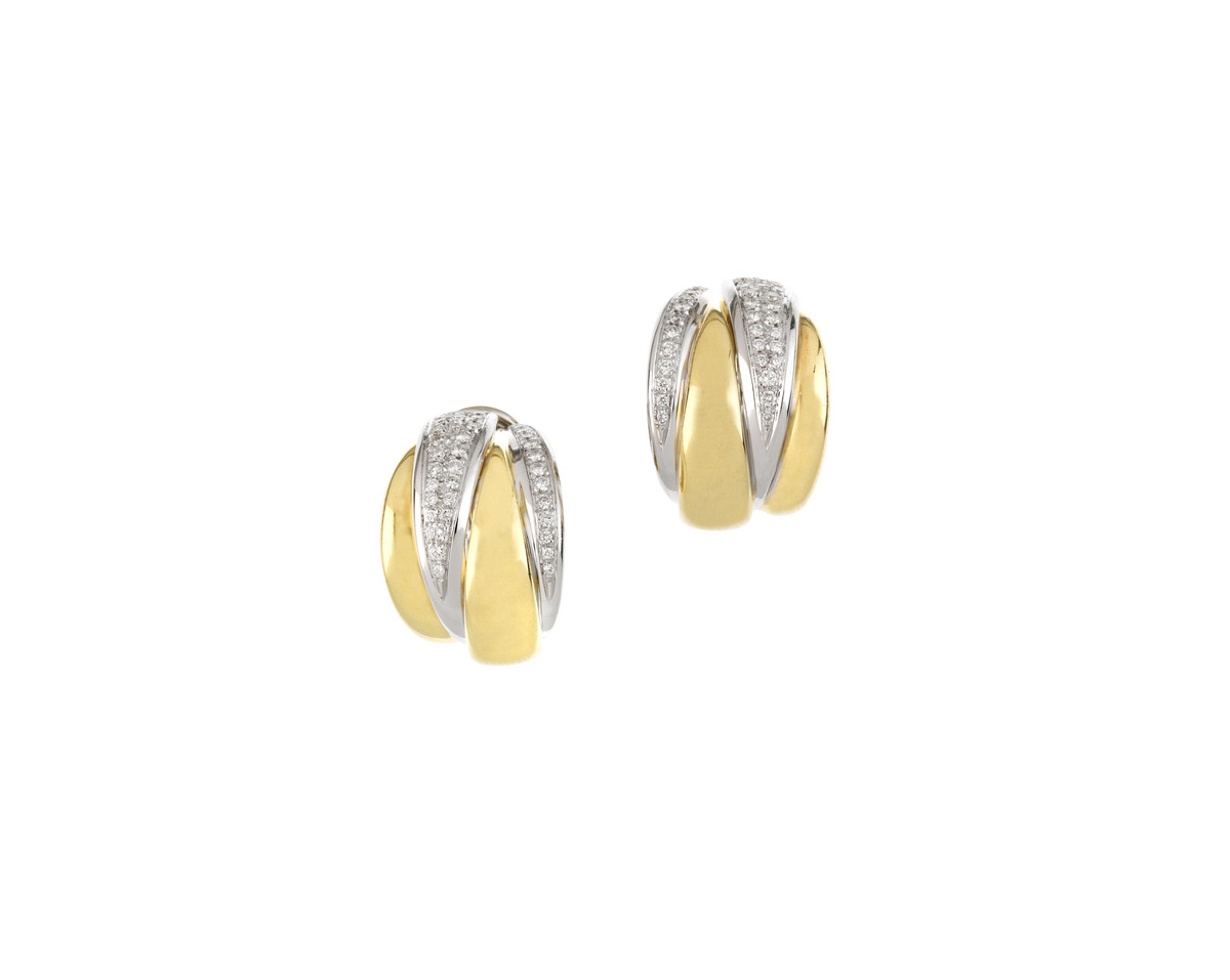 PAIO DI ORECCHINI IN ORO GIALLO, ORO BIANCO E DIAMANTI realizzati in oro bombato e sagomato decorati da elementi triangolari in oro bianco e diamanti, lungh. cm 2 PAIR OF YELLOW GOLD, WHITE GOLD AND DIAMOND EARRINGS