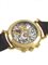 OROLOGIO DA POLSO IN ORO GIALLO 18 K, AUTOMATICO, CON CRONOGRAFO, DUE CONTATORI, TACHIMETRO E CINTURINO IN PELLE CON FIBBIA IN ORO VACHERON, CORREDATO DI SCATOLA, CONTROSCATOLA, GARANZIA E LIBRETTI