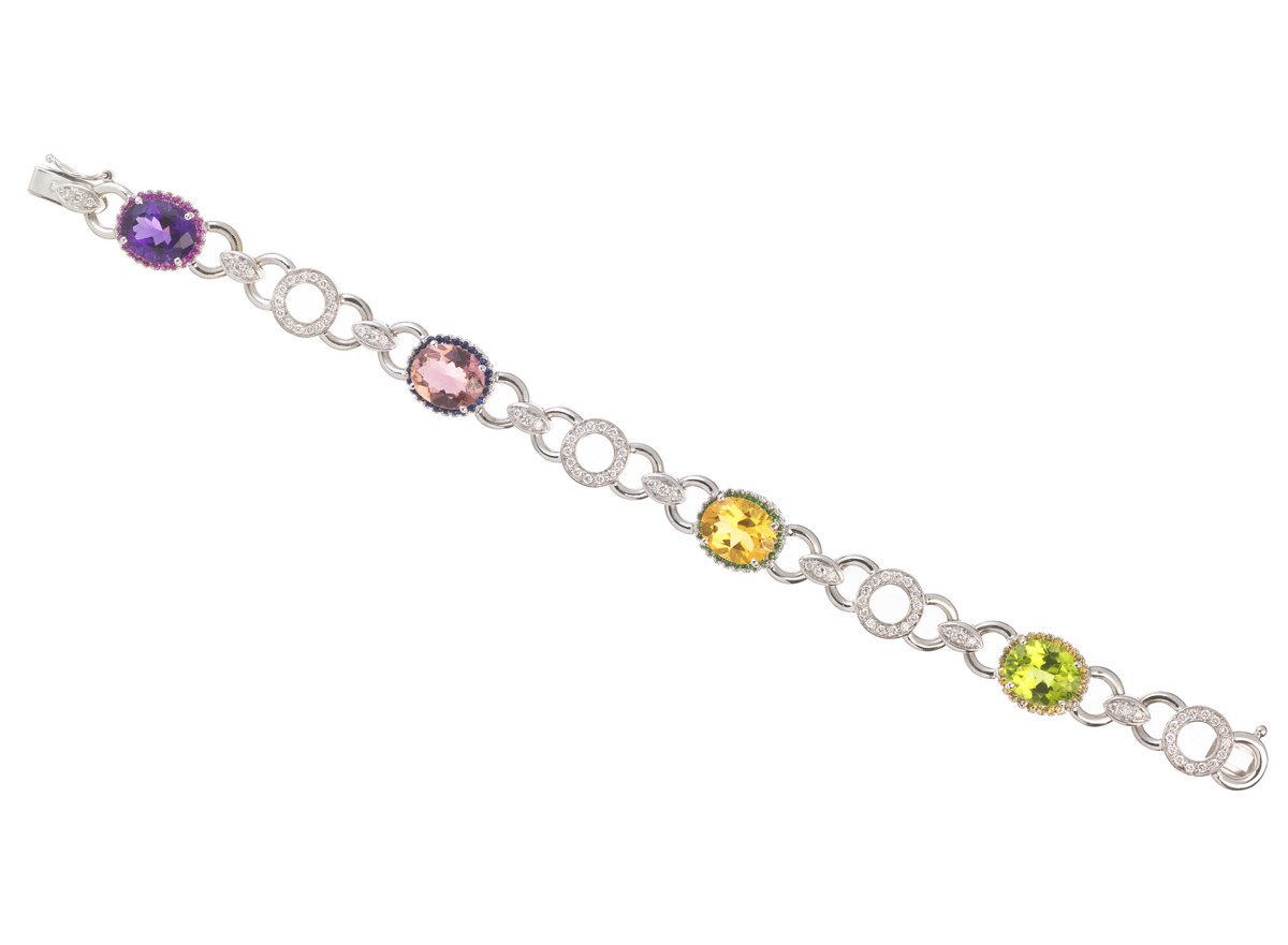 BRACCIALE IN ORO BIANCO, AMETISTA, TORMALINA ROSA, QUARZO CITRINO, PERIDOT,...