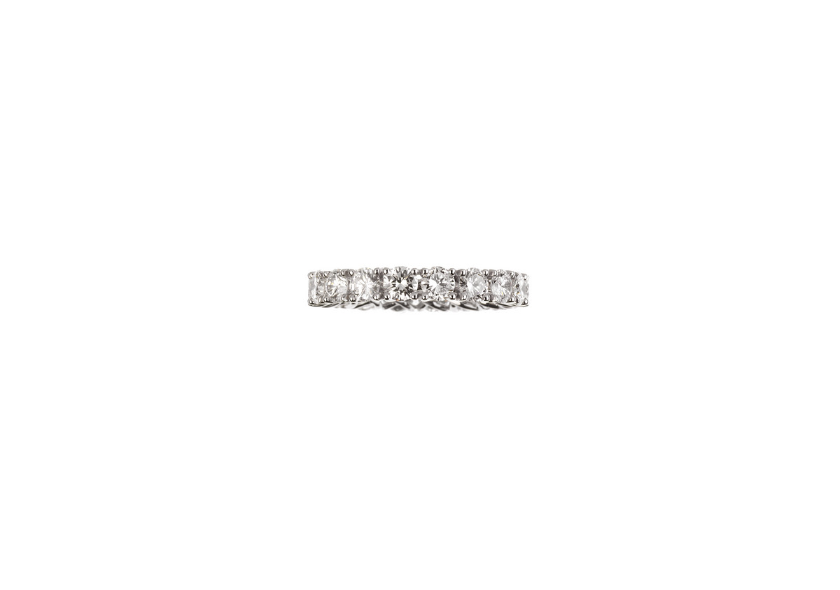 ANELLO “ETERNELLE” IN ORO BIANCO E DIAMANTI ad una linea di diciotto diamanti taglio brillante rotondo per ct 2.80 circa entro montatura a griffes, punzone 750, mis. 10 DIAMOND AND WHITE GOLD ETERNITY RING