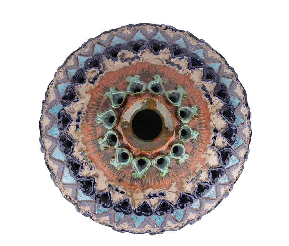 EMILIA PALOMBA Vaso tondo lavorato a motivi geometrici Terracotta dipinta, 16...