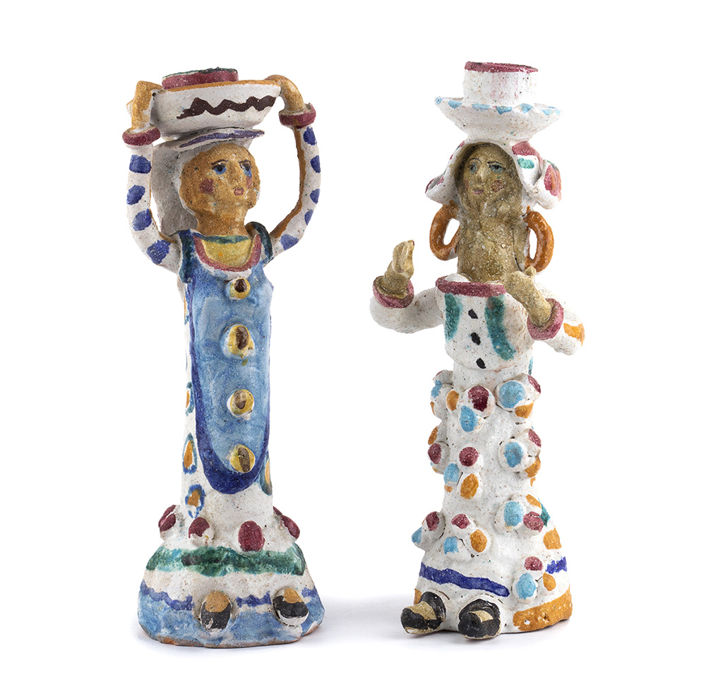PROCIDA - VIETRI Coppia di acquaiole Sculture in ceramica dipinta, h. 23,5 cm Firma sotto la base: PROCIDA