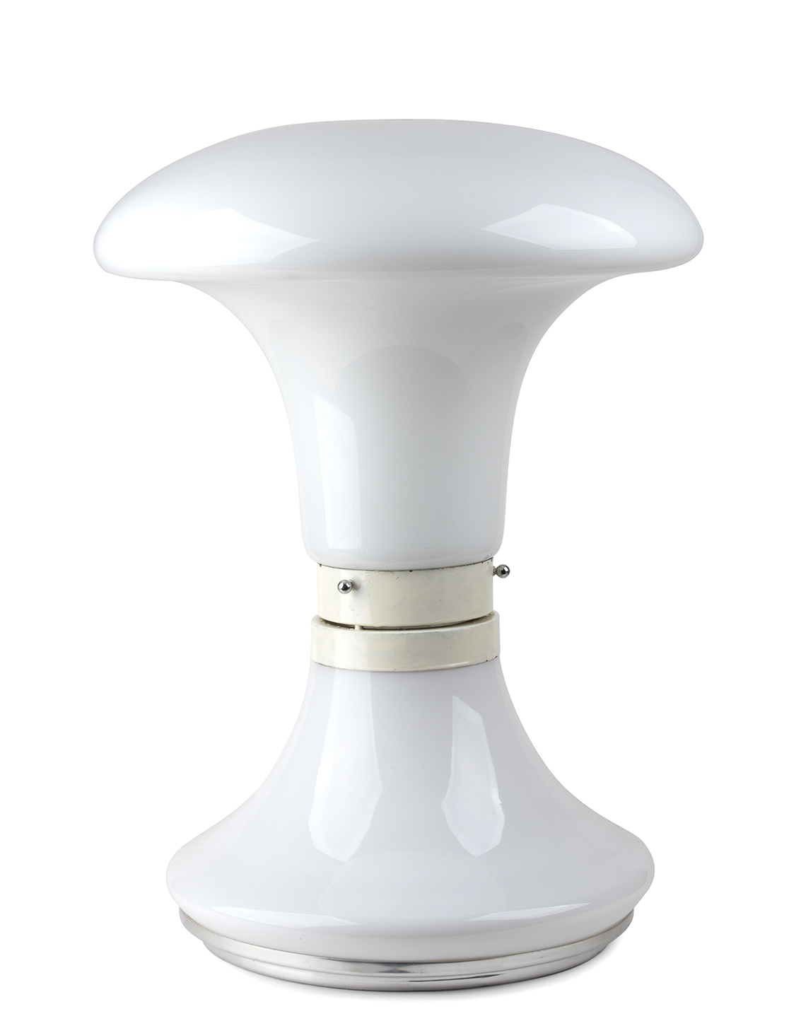 Lampada da terra in vetro Murano soffiato bianco con raccordo e base in acciaio cromato Vetro e acciaio, 60 x 45 cm