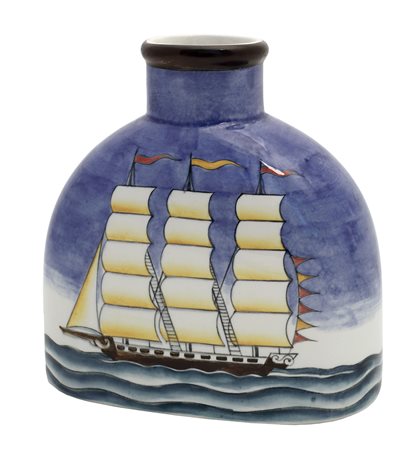 GIÒ PONTI - RICHARD GINORI, SAN CRISTOFORO Vaso con veliero, Anni ‘50 Ceramica dipinta, 17 x 14,5 cm Timbro della manifattura e n° esemplare sotto la base: Richard Ginori, S. Cristoforo, Milano, Made in Italy, 489