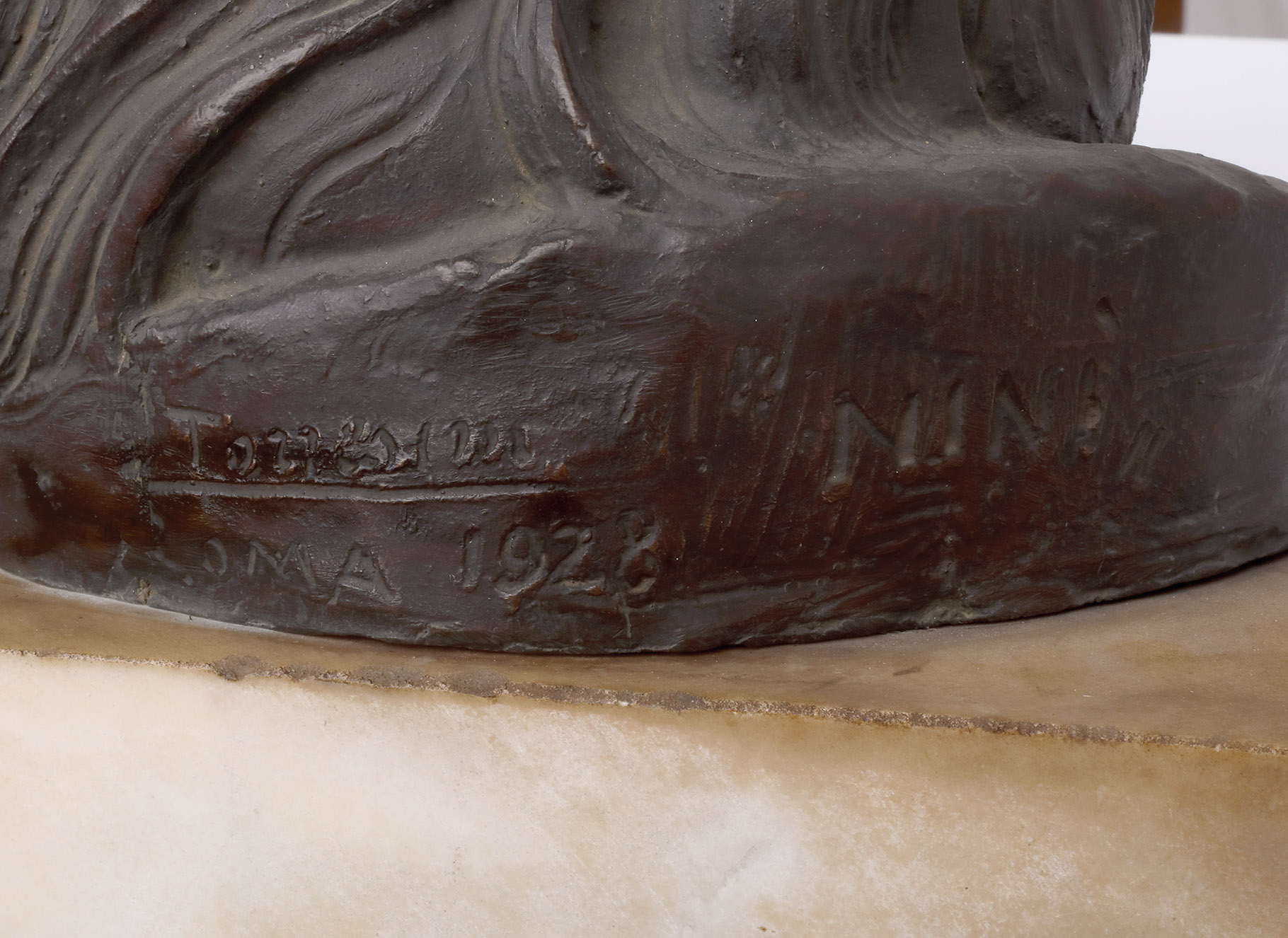 ATTILIO TORRESINI Ninì dormiente, 1928 Scultura in bronzo, 24 x 34 x 33 cm (16 x 34,5 x 25 cm base inclusa) Firma, data e titolo al retro: A. Torresini, Roma 1928, Ninì
