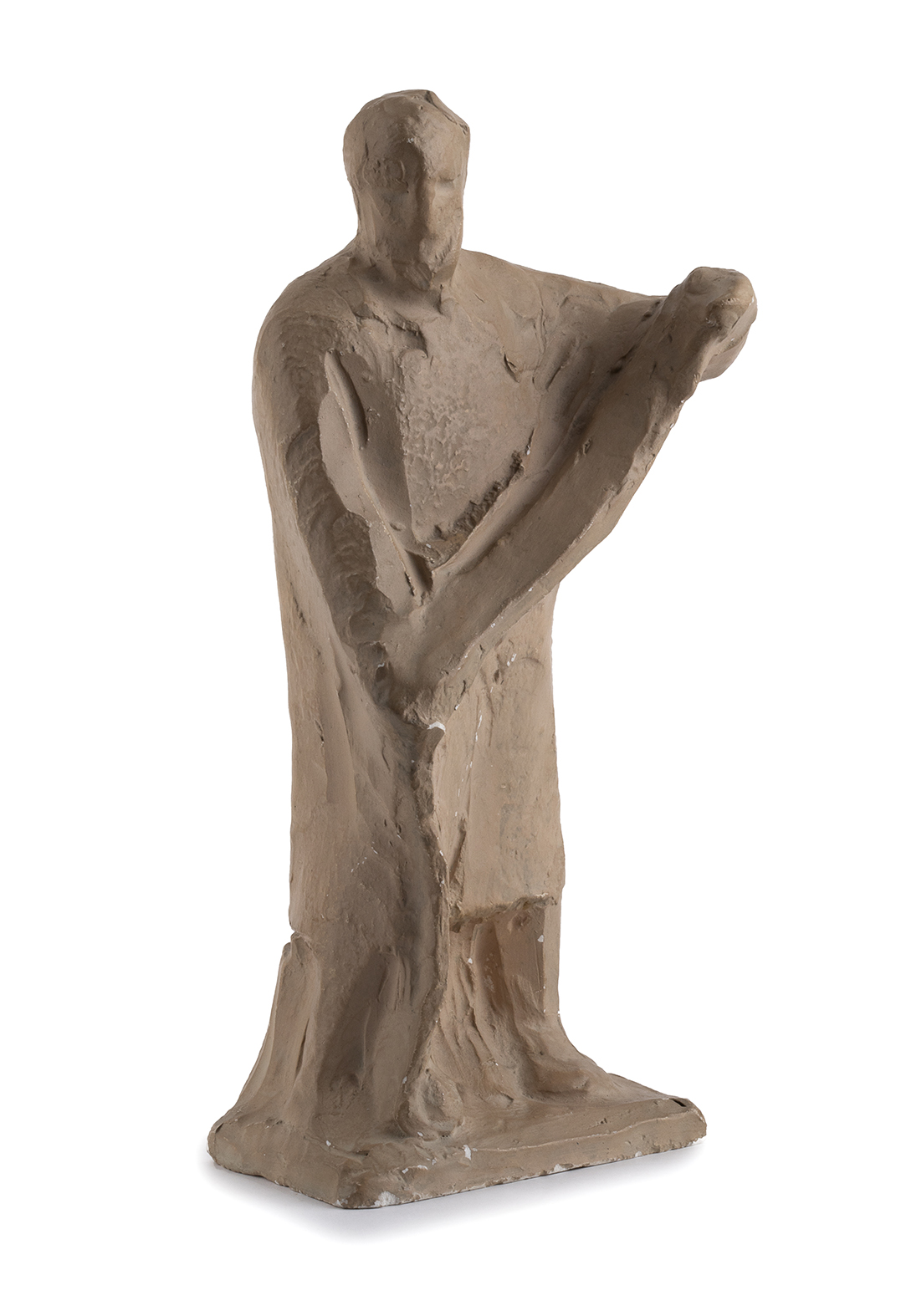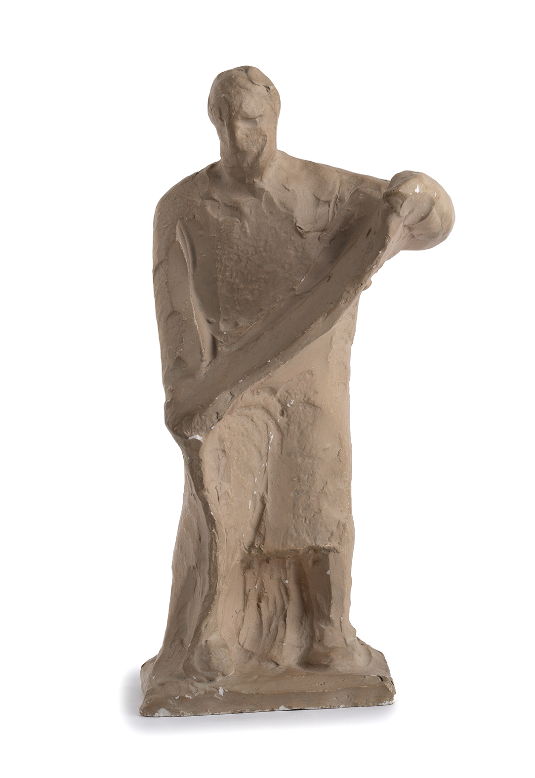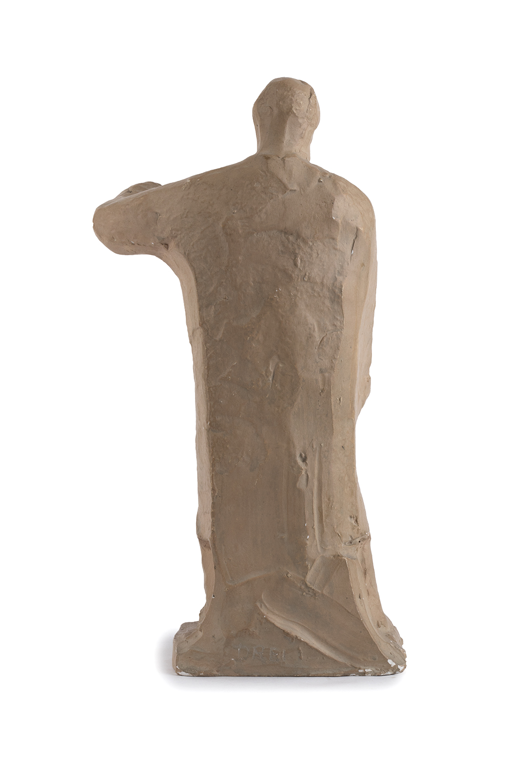 ERCOLE DREI Bozzetto scultoreo di Uomo con cartiglio in mano Scultura in gesso, h. 30 cm Firma sulla base al retro: DREI
