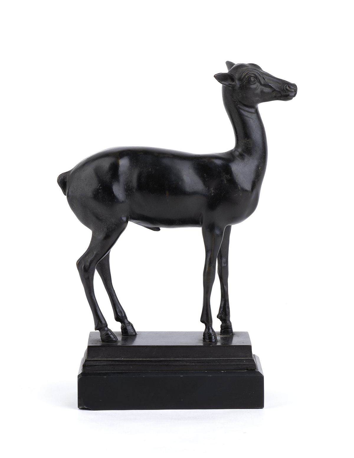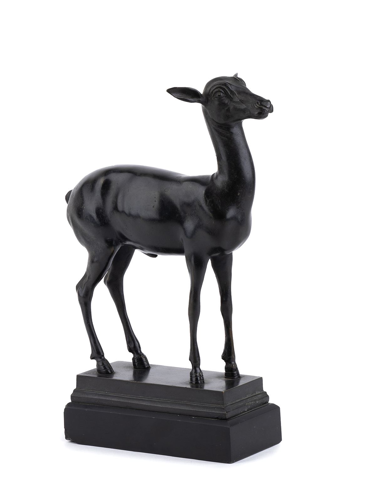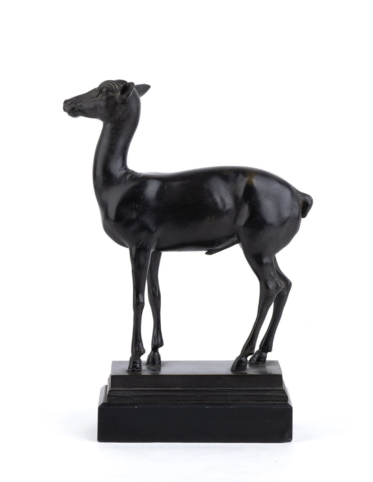SCULTORE ANONIMO Antilope Scultura in bronzo, h. 22 cm (h. 25 cm base inclusa)