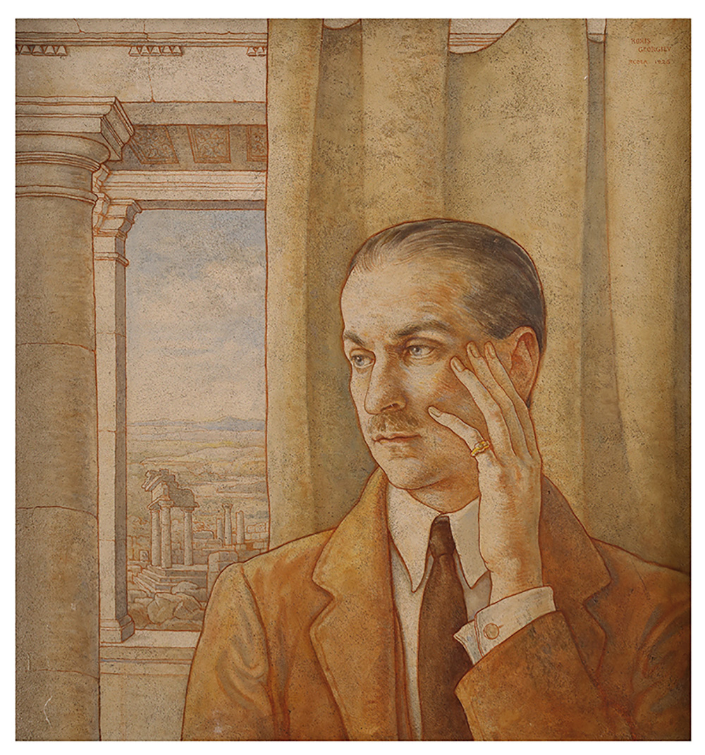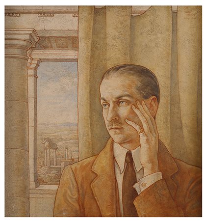 BORIS GEORGIEV Ritratto d’uomo alla finestra, 1925 Tecnica mista su tavola, 57 x 53 cm Firma, luogo e data in alto a destra: Boris Georgiev, Roma 1925