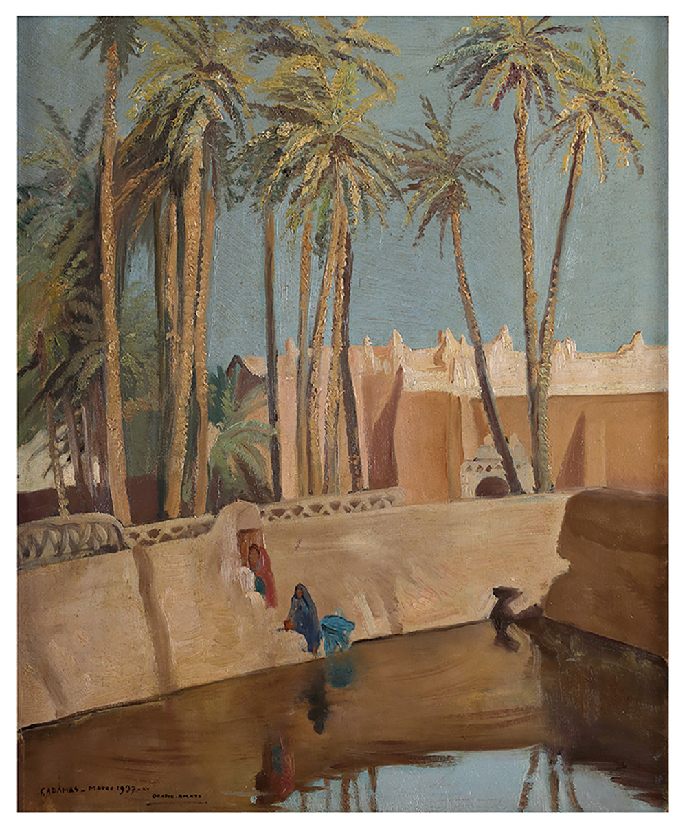 ORAZIO AMATO Gadames, 1937 Olio su tela, 61,5 x 50 cm Titolo, data e firma in basso a sinistra: Gadames, marzo 1937, Orazio Amato Etichetta della mostra Triennale delle Terre Italiane d’oltremare, Napoli 1940 ESPOSIZIONI Triennale delle Terre Italiane d’oltremare, Napoli 1940 PUBBLICAZIONI U. Ortona, “Le terre d’oltremare e l’arte italiana contemporanea”, Edizioni della mostra d’oltremare, Napoli, 1940, p. 13