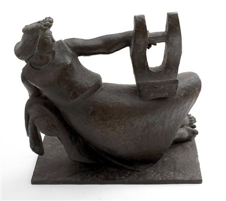 SCULTORE ANONIMO Senza titolo (donna con lira), Anni ‘20 Scultura in bronzo, 45 x 50 x 30 cm