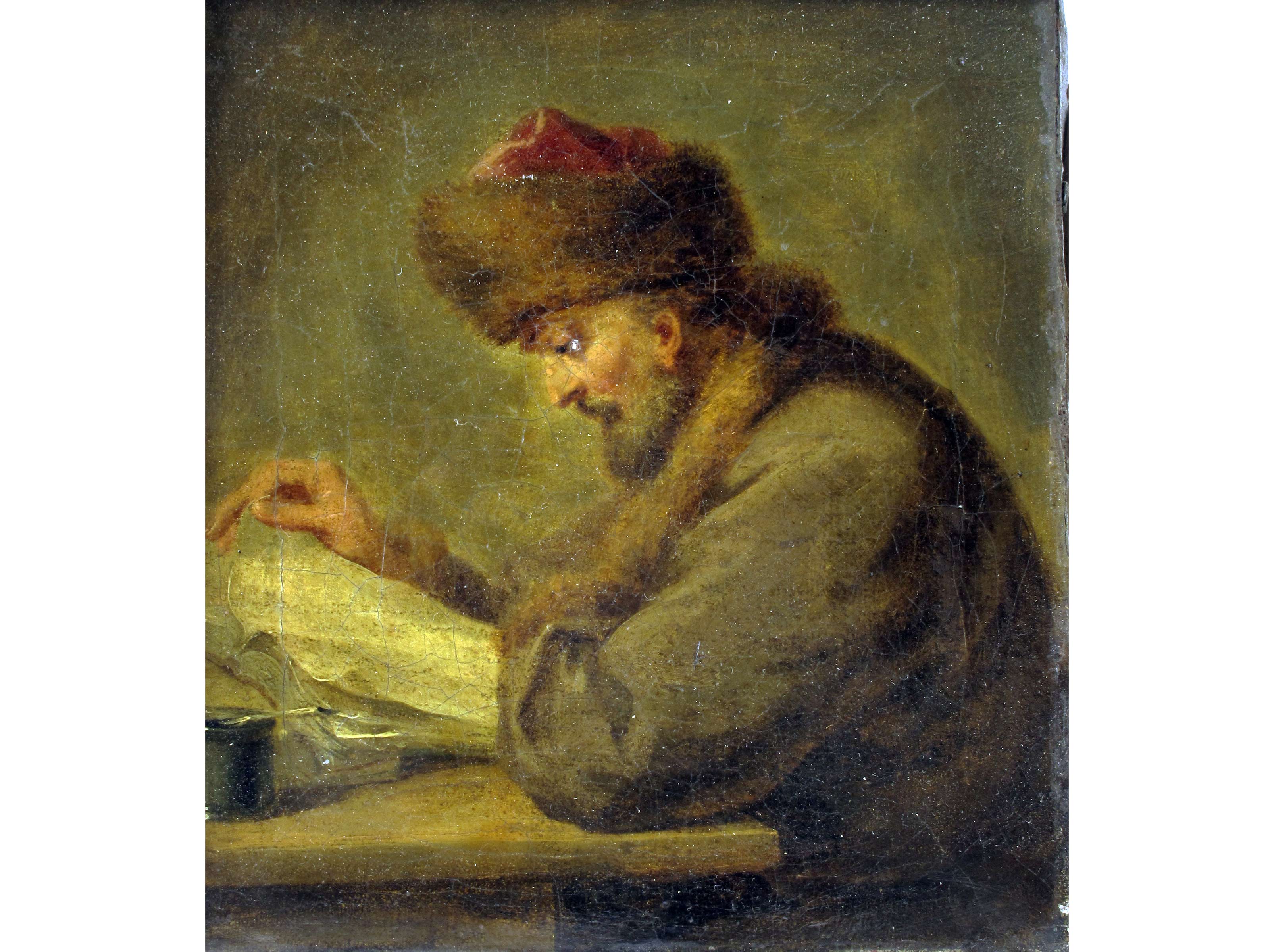 Scuola tedesca del XVIII secolo Due dipinti I prestatori di denaro Olio su tela Misure 16x14 cm